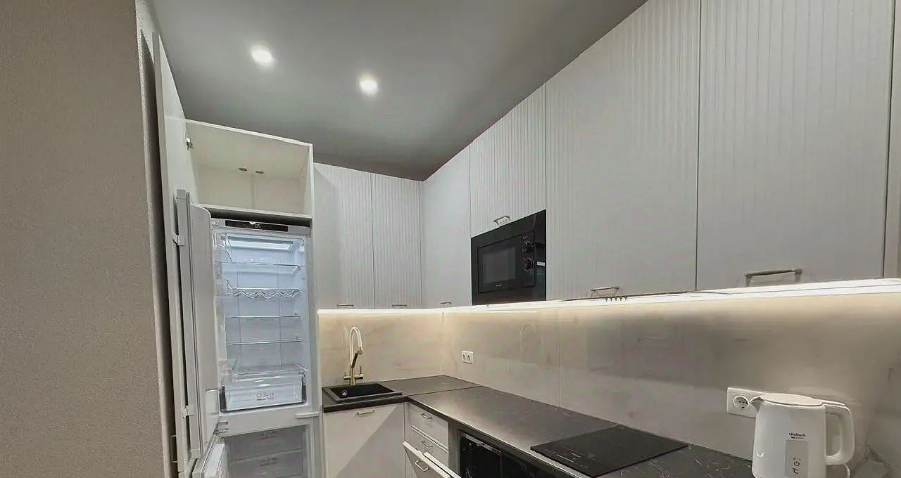 В квартире есть всё необходимое для комфортного проживания. Просторная кухня с современной мебелью, оснащённая всей необходимой техникой: кондиционер, холодильник, посудомоечная машина. В комнате также предусмотрена мебель для удобного размещения. Ванная комната оборудована ванной, стиральной машиной и другими удобствами. Совмещённый санузел выполнен в современном дизайне.