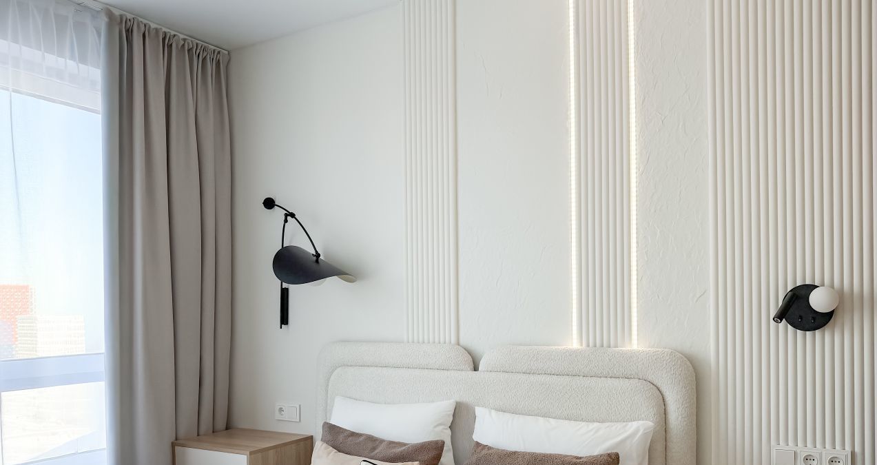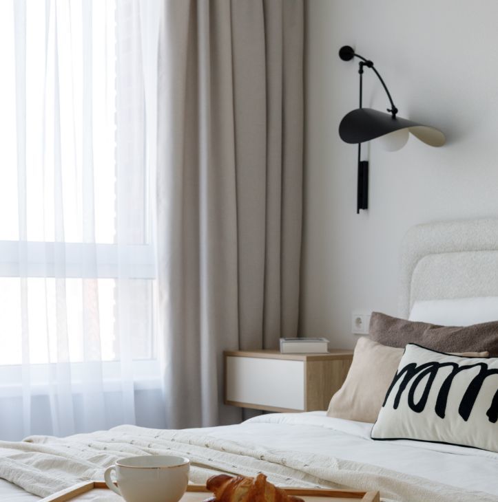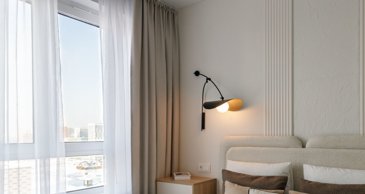 спальня: удобная кровать с ортопедическим матрасом, шторы Блэк аут, большой вместительный шкаф.