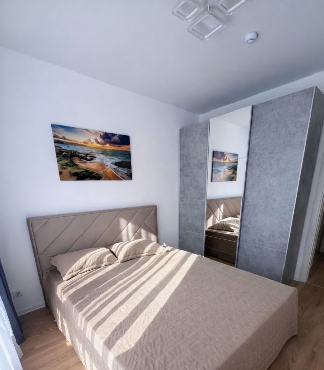 — новая кровать с подъёмным механизмом и качественный матрас;