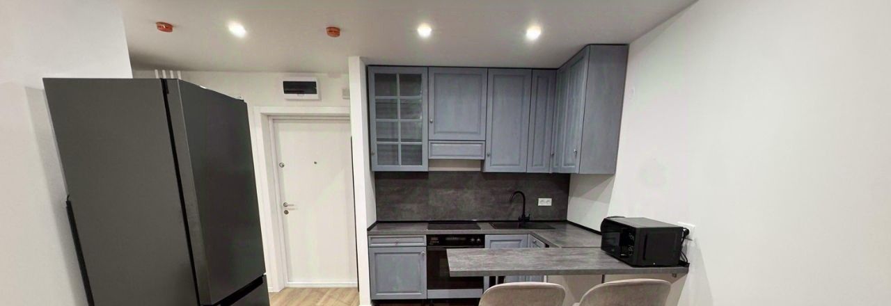Квартира расположена на 14 этаже монолитного дома, построенного в 2025 году. В доме есть пассажирский и грузовой лифты. Просторная кухня площадью 22 м² оборудована всем необходимым для комфортного проживания.
