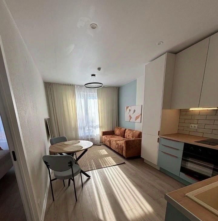 Евро 2-комнатная квартира, полностью меблированная, свежий отличный ремонт, новая мебель. Никто не жил. Все, вплоть до посуды. Планировка: кухня-гостиная+спальня. Сдается впервые, на длительный срок. Временная регистрация возможна. Возможно проживание с детьми и небольшими воспитанными питомцами. Высокий этаж, вид во двор и на улицу.