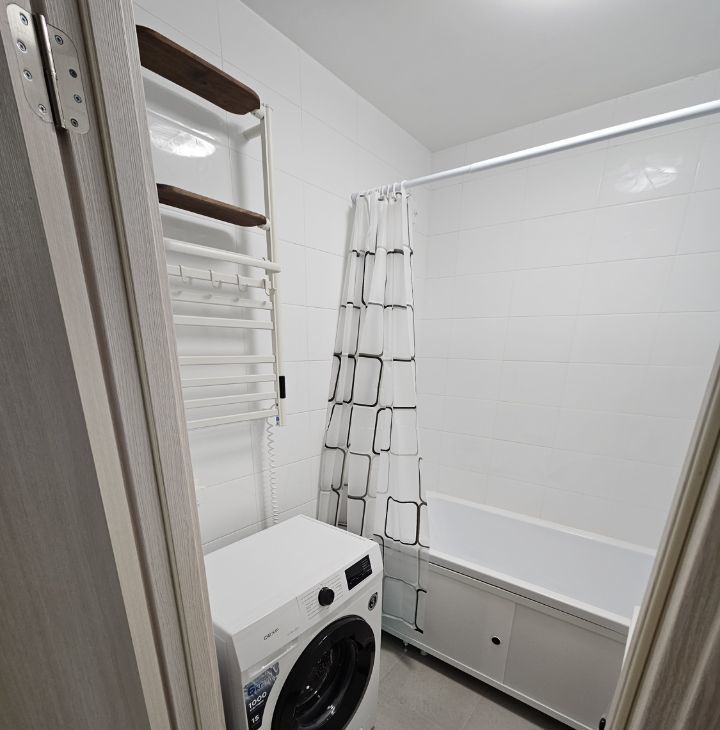Бытовая техника: стиральная машина, посудомоечная машина, телевизор 50", холодильник, духовой шкаф, варочная панель, вытяжка, микроволновая печь, электрический чайник, кондиционер, а также все необходимое для комфортного проживания.
