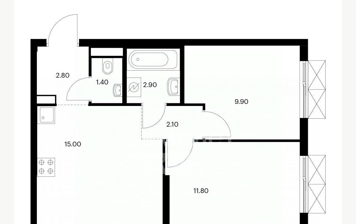 Одна комната пока без мебели — докомплектуем под потребности арендаторов: детская, кабинет или спальня.