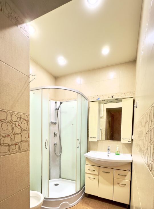 В квартире сделан косметический ремонт, есть вся необходимая мебель на кухне и в комнате. Из техники: кондиционер, холодильник, телевизор и стиральная машина. Ванная комната оборудована душевой кабиной, а наличие интернета позволяет оставаться на связи.