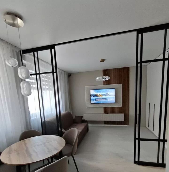 В квартире есть вся необходимая техника: холодильник, телевизор, посудомоечная и стиральная машины. Мебель на кухне и в комнате. Просторный балкон — отличное место для отдыха. Санузел раздельный, в ванной комнате — полноценная ванна.