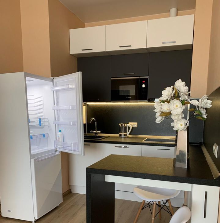 В наличии вся необходимая мебель на кухне и в комнате, техника: кондиционер, холодильник, посудомоечная и стиральная машины, телевизор. Совмещенный санузел оборудован современными сантехническими приборами. Это жилье идеально подходит для тех, кто ценит стиль и удобство.