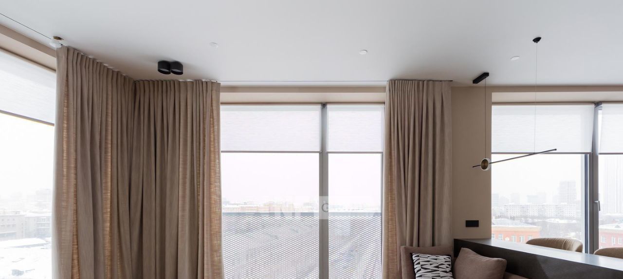 Из панорамных окон открывается красивый вид на город.