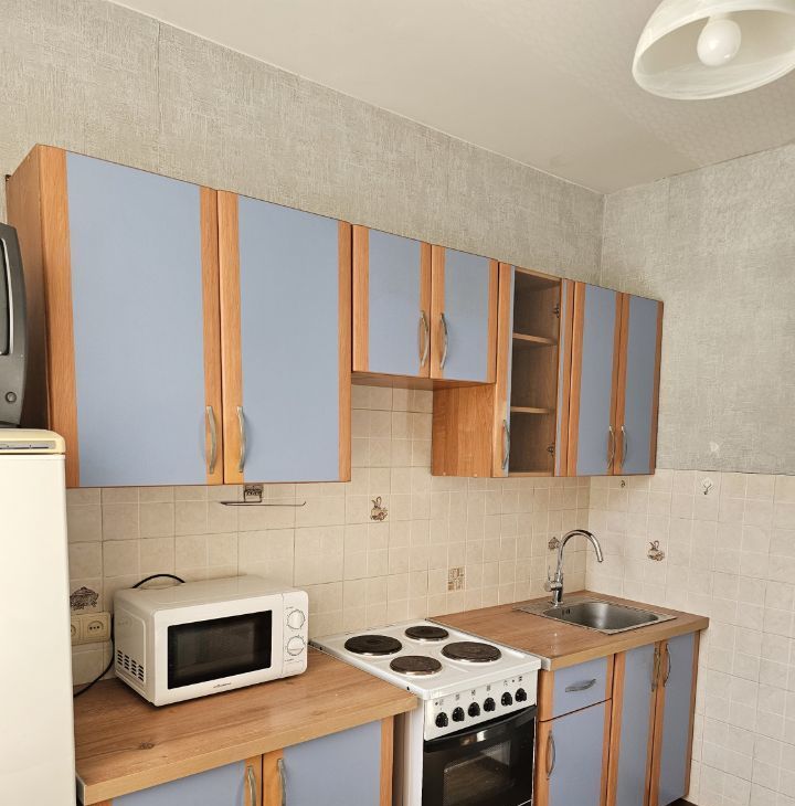 В квартире имеется вся необходимая мебель и техника, кухня оборудована холодильником, микроволновой печью и стиральной машиной. Санузел раздельный, комнаты без мебели.