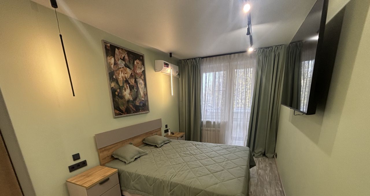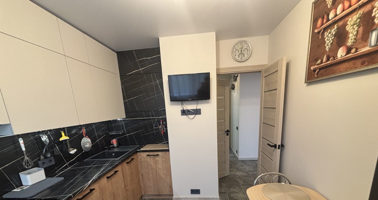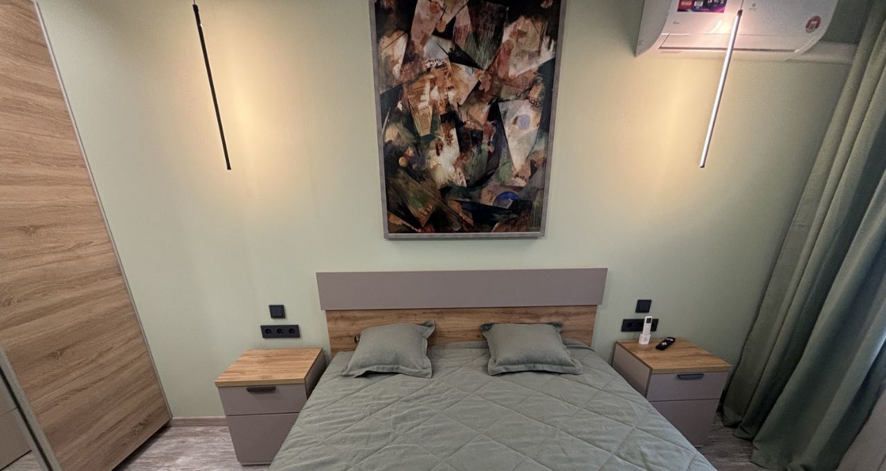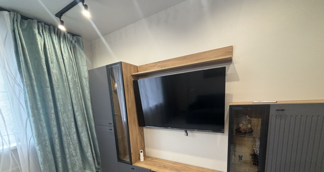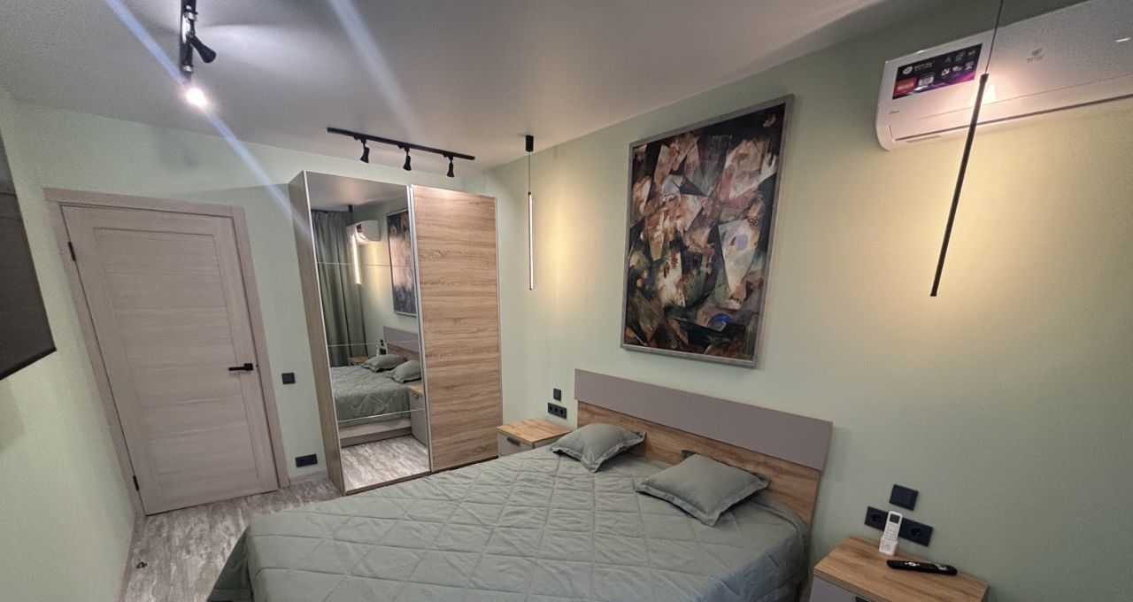 Квартира стильно обустроена. Двухспальная кровать 160*200 с ортопедическим матрасом, диван с дополнительным спальным местом, шкафы-купе, 3 телевизора,