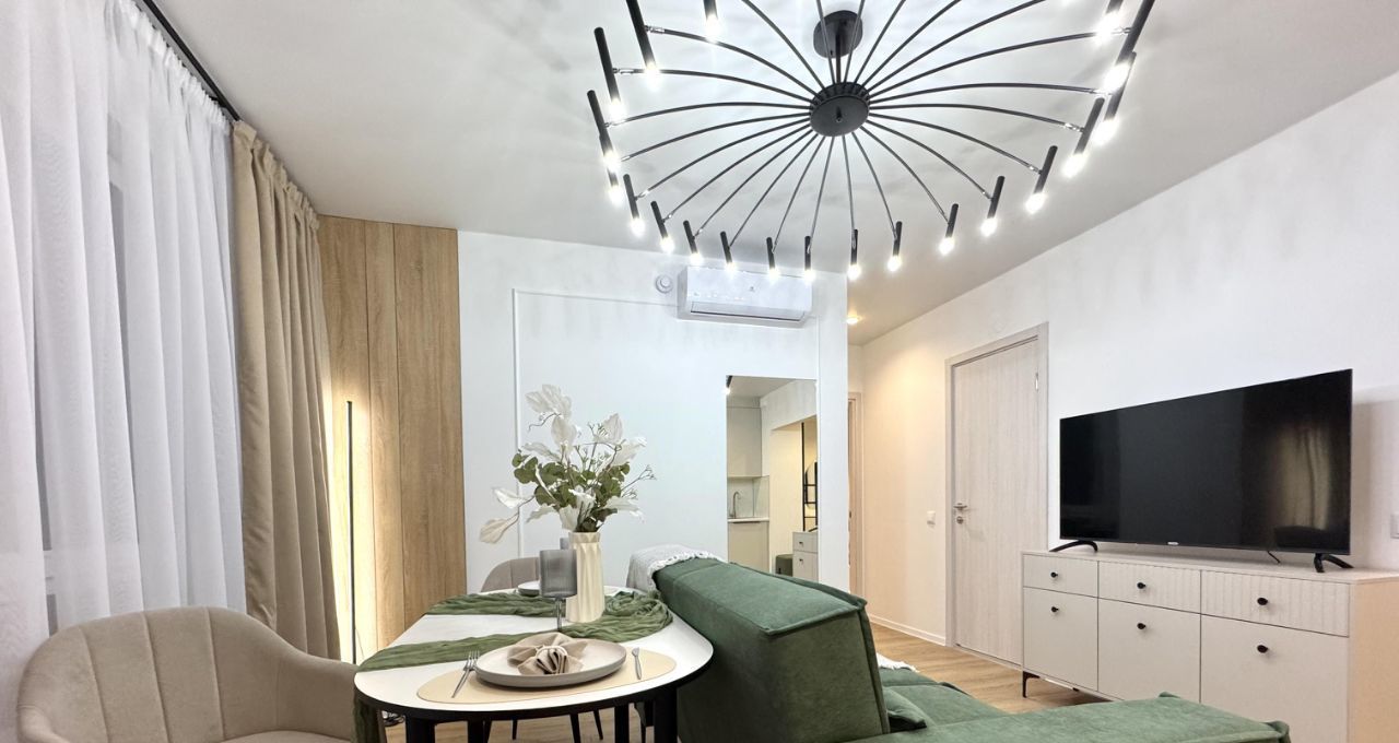 В квартире продуманно все до мелочей. Есть вся необходимая мебель и техника.