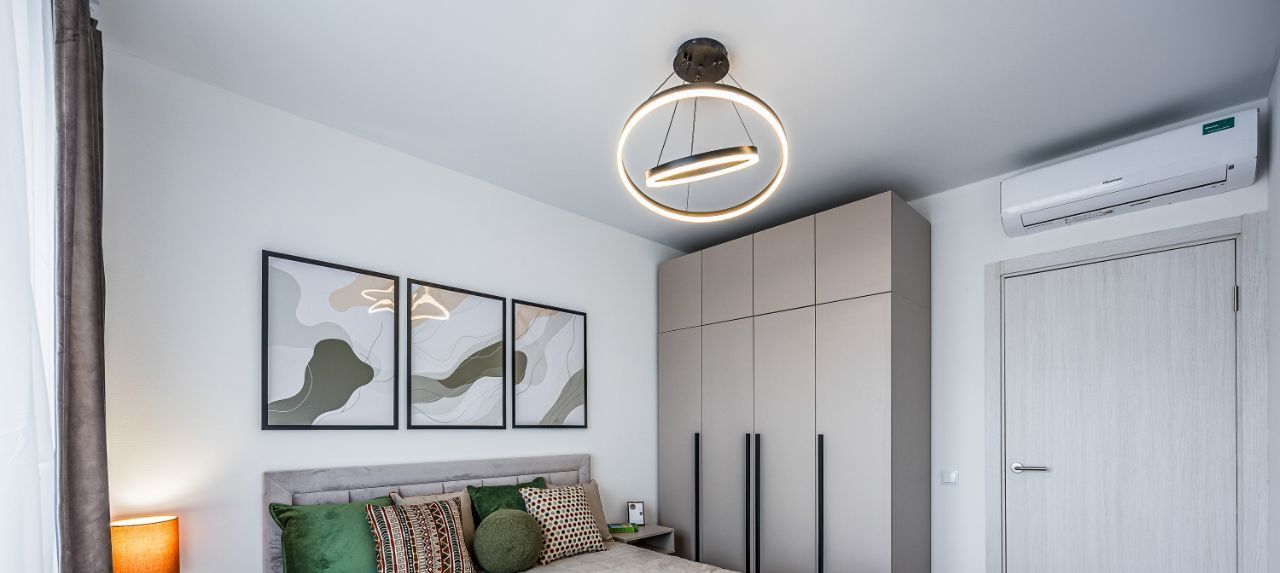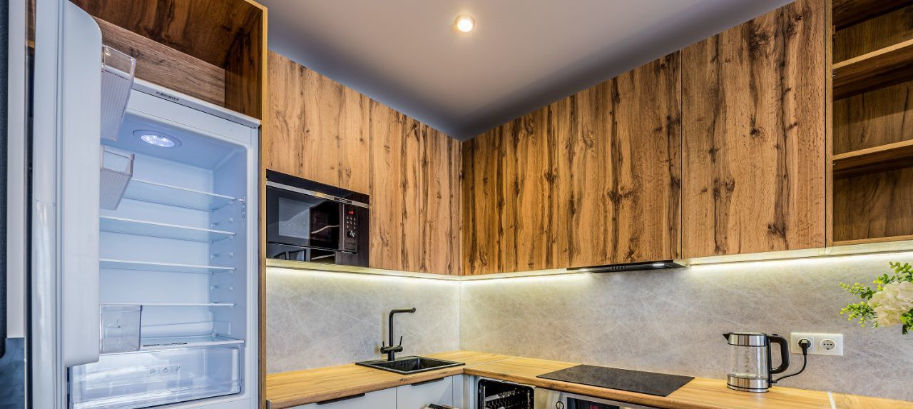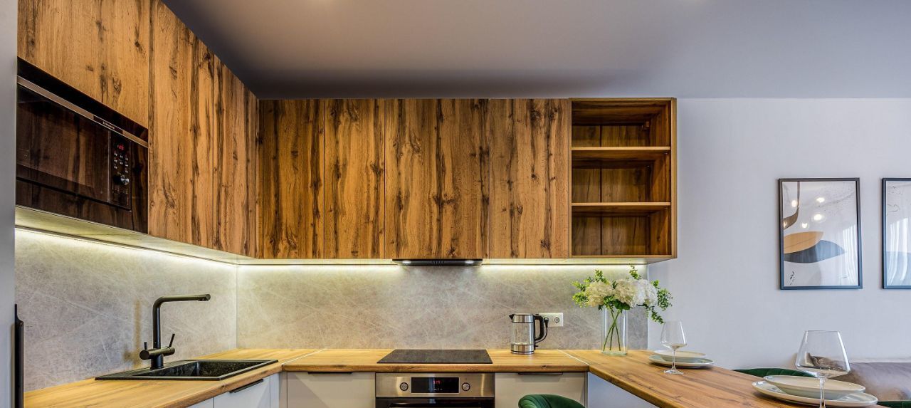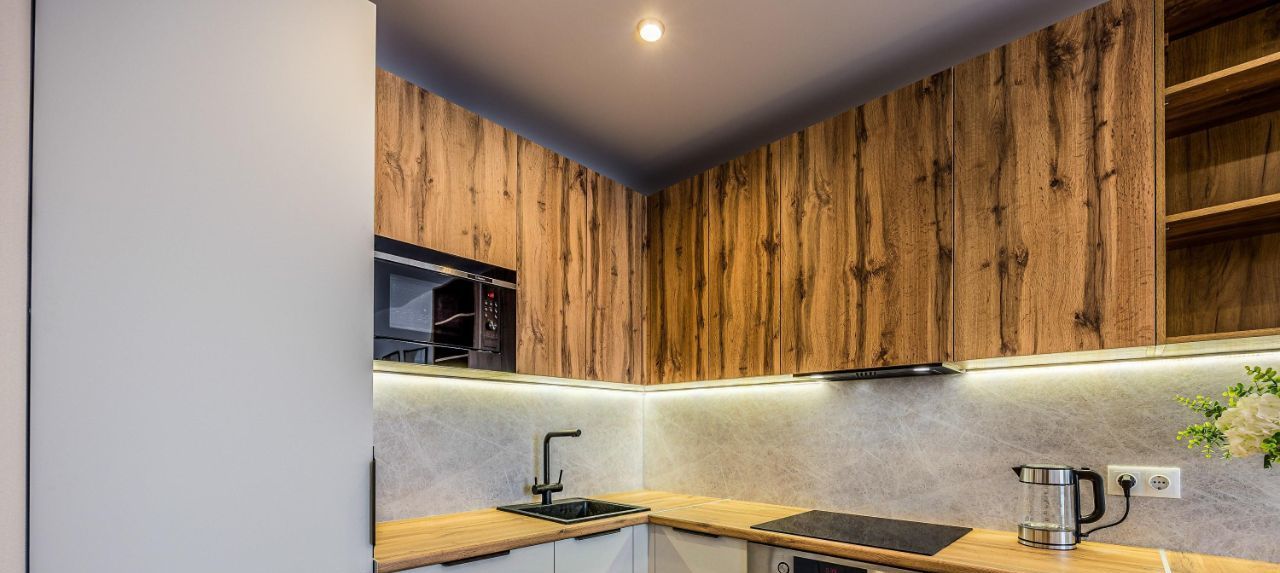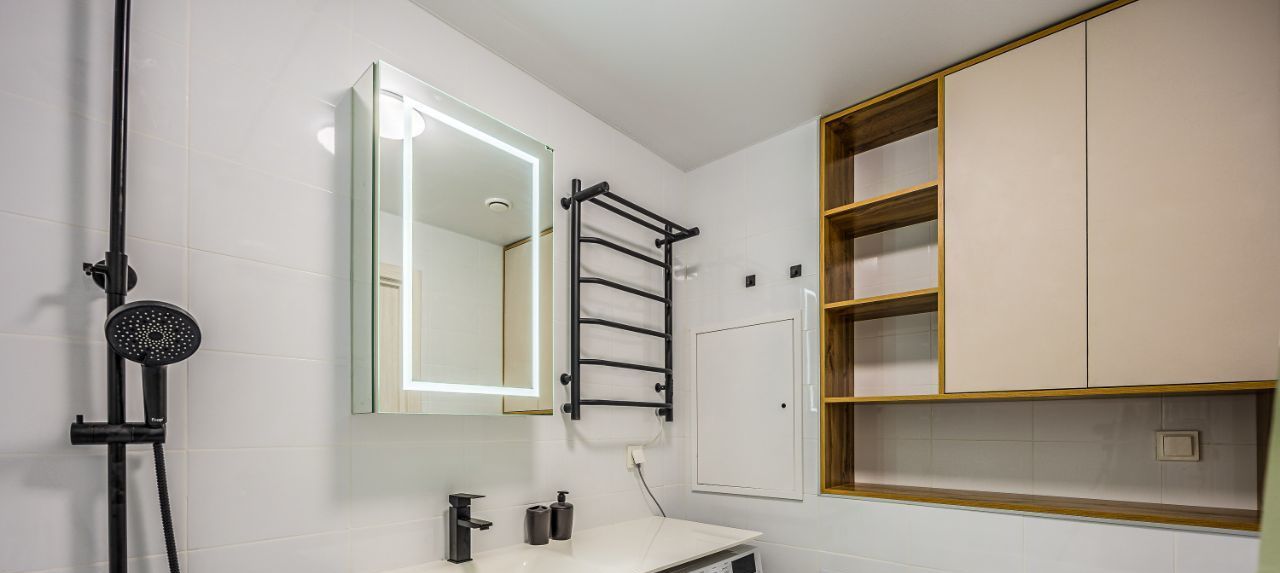 Вся необходимая техника - стиральная машина, духовой шкаф, индукционная плита, посудомойка, микроволновка, чайник, встроенный холодильник, вытяжка, кондиционер в каждой комнате.