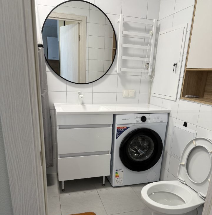 Дом новый оснащен подземным паркингом В квартире есть вся необходимая техника (варочная панель, духовой шкаф, посудомоечная машина, кондиционер, стиральная машина, холодильник ,телевизор , микроволновая печь) и мебель