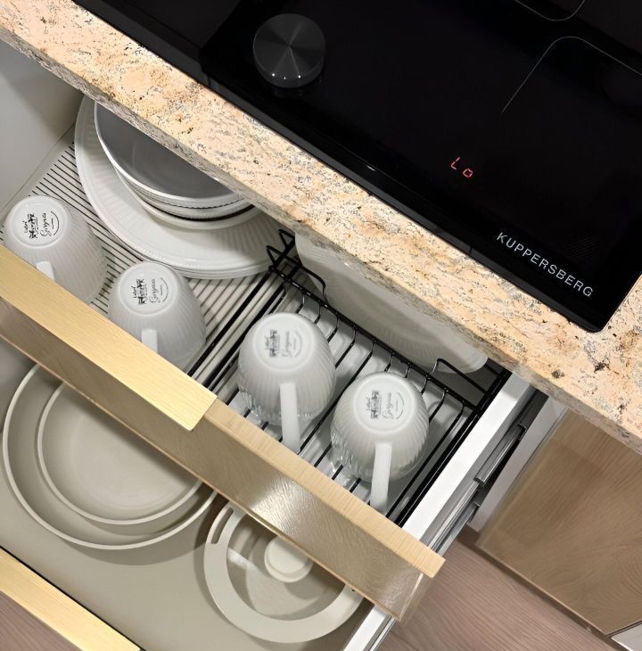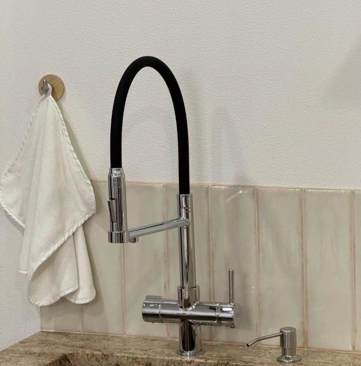 - Кухня-гостиная: столешница из натурального камня, фильтром для воды, вытяжкой, СВЧ, духовым шкафом и посудомоечной машиной, Hansa⁄LG и д.р.