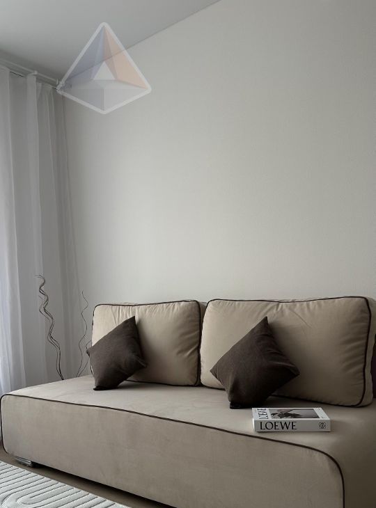Компактная квартира 36 м² на высоком 19 этаже (потолки 2,5 м): просторная кухня-гостиная 17,2 м² с техникой и посудой, раскладным диваном 140200, столом, стульями, ТВ; отдельная спальня 12 м² с двуспальной кроватью 160200, шкафом, тумбой; совмещённый санузел с ванной. Полный комплект: холодильник, стиральная машина, кондиционер, интернет — заезжай и живи.