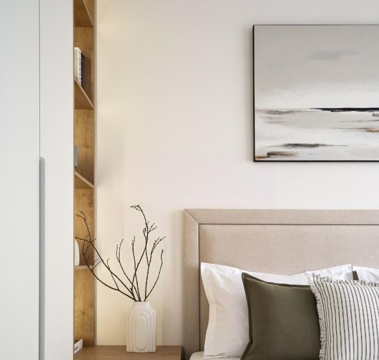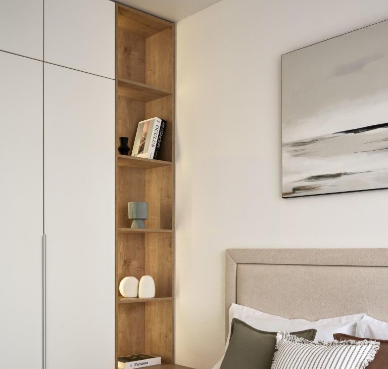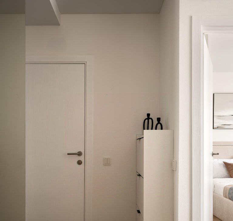 Много хранения - 4 встроенных шкафа от пола до потока.