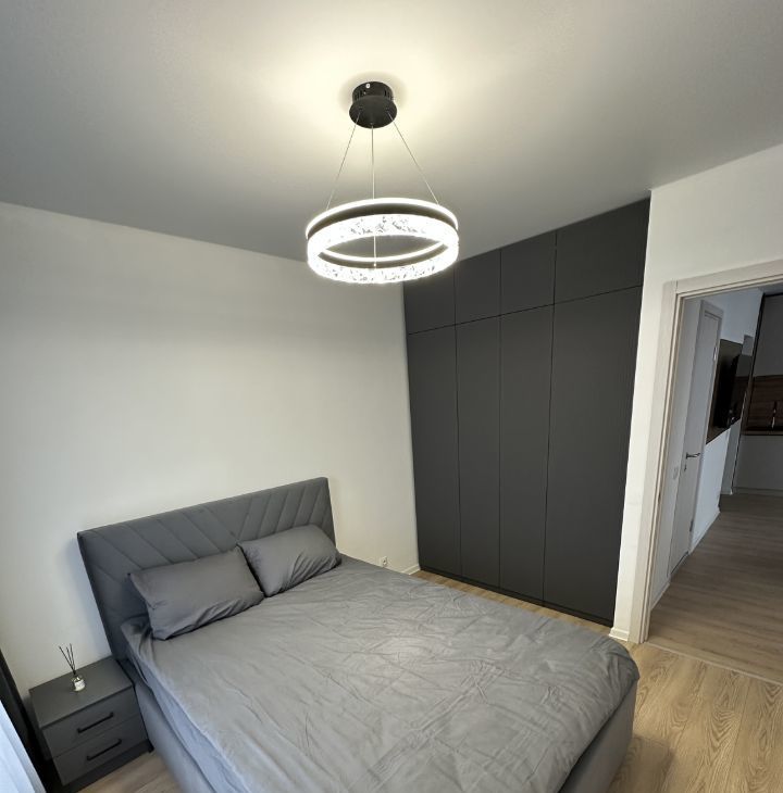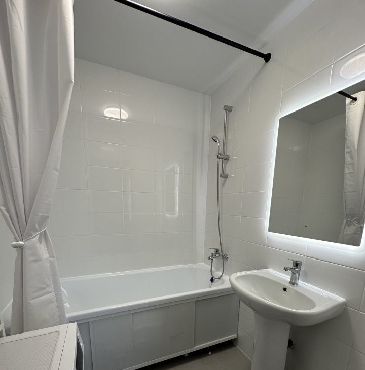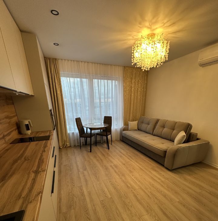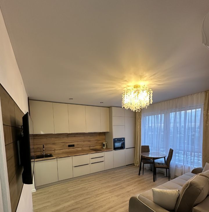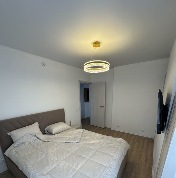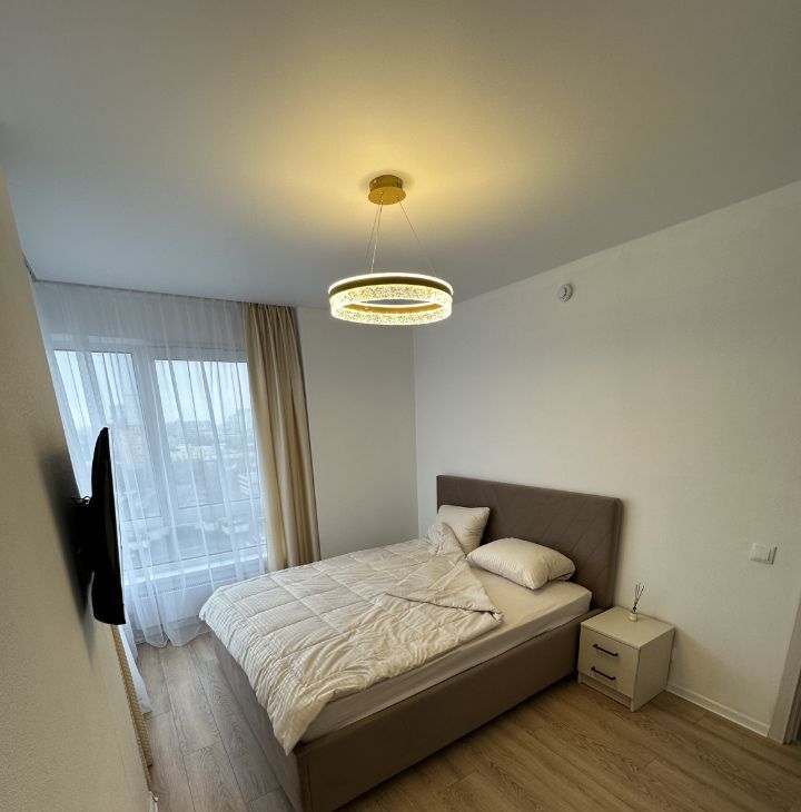 Квартира выполнена в дизайнерском стиле, что подчеркивает современный подход к оформлению интерьера. В квартире есть вся необходимая мебель, как в комнате, так и на кухне. Техника представлена кондиционером, холодильником, телевизором, посудомоечной и стиральной машинами, поэтому ваше пребывание здесь будет максимально комфортным. Ванная комната оборудована ванной, что позволяет расслабиться после долгого дня.