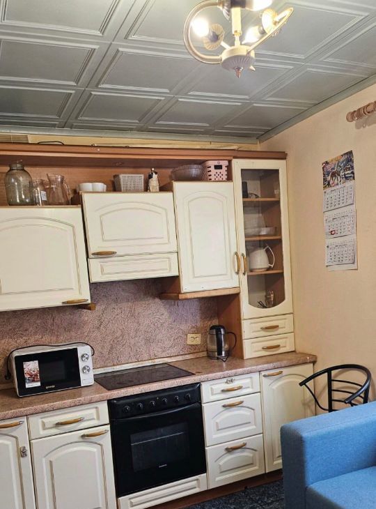 квартира сдаётся на длительный срок , в одной комнате только шкаф , спальный гарнитур , на кухне кухонный гарнитур,диван который можно перенести в комнату. сдается всем .