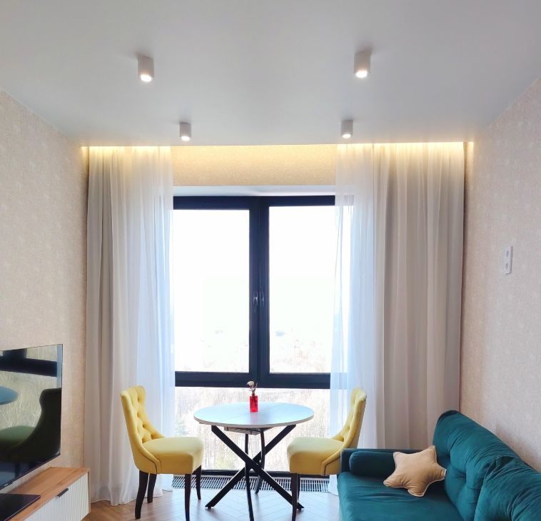 Просторная евро трехкомнатная квартира на длительный срок. Две изолированные комнаты: гостиная и мастер-спальня, а также кухня-гостиная с панорамными окнами.