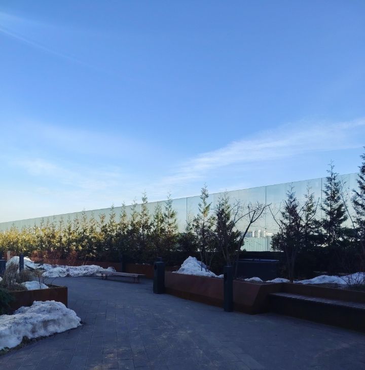 Отдохнуть и побыть на свежем воздухе не покидая дома можно на открытой просторной зоне стилобата.