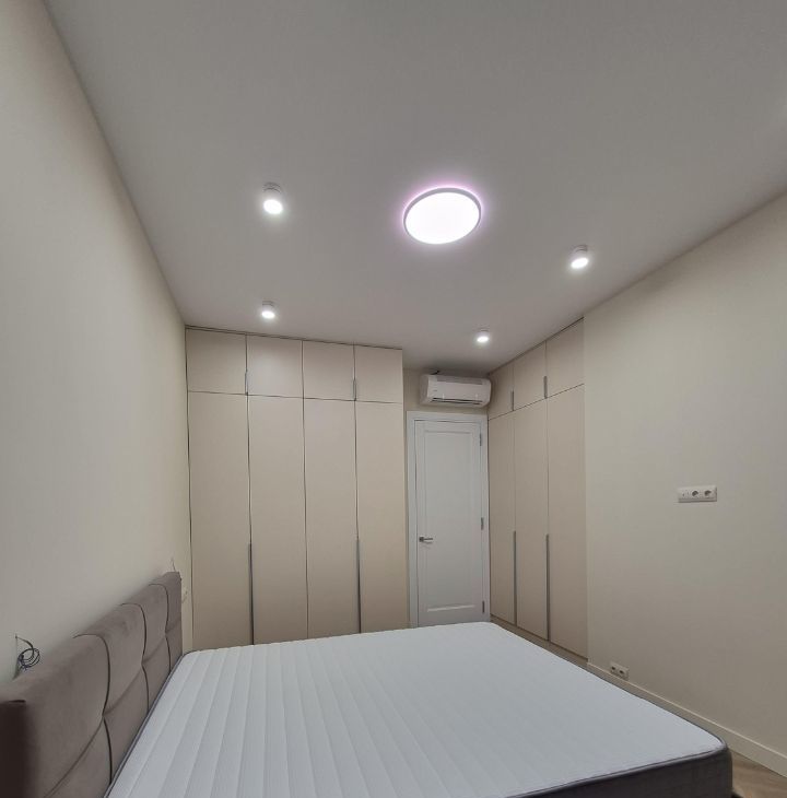 Кухня-гостиная 21,5 м2 со встроенным кухонным гарнитуром и бытовой техникой, (посудомоечная машина, холодильник, варочная поверхрость). Спальная 12,5 м2 с двуспальной кроватью и двумя вместительными шкафами. Просторный санузел. Трехстворчатый шкаф в прихожей. Установлены кондиционеры. Из окон видна Москва- река. Недостающие предметы интерьера и ТВ покупаются под Арендатора.