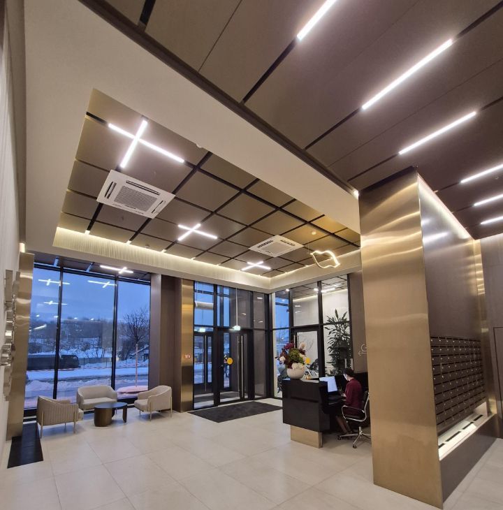 Солидная входная группа. Консьерж-сервис Sminex, зона отдыха с мягкой мебелью, места для хранения велосипедов, гостевые санузлы на 1 и 2 этажах. Во дворе (находится на стилобате), спортивные площадки для разных возрастов, места для отдыха и прогулок, газоны и прогулочные аллеи.