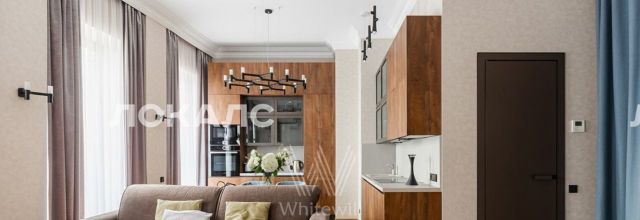 Квартира с 1 спальней общей площадью 78 м² в комплексе "Садовые кварталы" на 8 этаже. Выполнена дизайнерская отделка в современном стиле. Благодаря панорамным окнам и потолкам высотой 3,6 метра пространство наполнено естественным светом и воздухом. Спланирована кухня-гостиная с обеденной зоной, спальня с собственным санузлом, гостевой санузел с постирочной, гардеробная, прихожая. Квартира полностью меблирована и оборудована бытовой техникой. В стоимость входят 2 машино-места в подземном паркинге.
