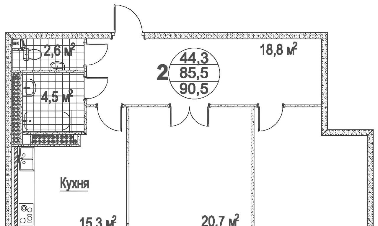 2-к кв. Москва ул. Эльдара Рязанова, 4 (92.0 м²)