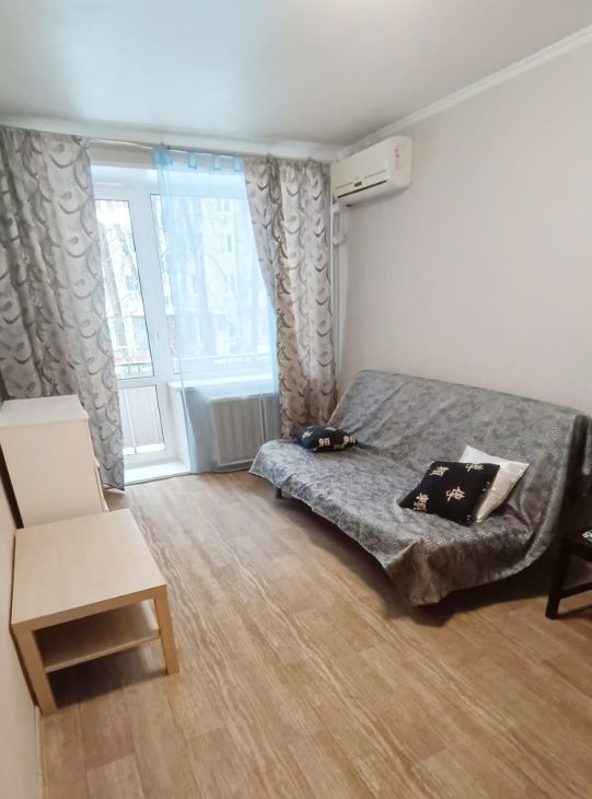 В квартире сделан косметический ремонт. Здесь есть всё необходимое для комфортного проживания: на кухне и в комнате установлена мебель, а из техники — новый холодильник и стиральная машина. Ванная комната оборудована ванной. Установлен новый унитаз. Планировка квартиры функциональная, есть один совмещённый санузел и балкон. Связь с внешним миром поддерживается через интернет. Рабочий кондиционер.