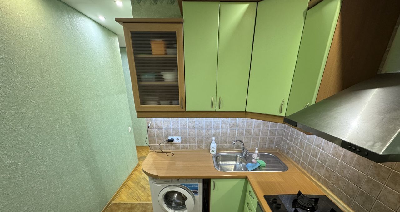 Кухня полностью оборудована встроенной техникой: варочная панель, духовой шкаф, вытяжка.