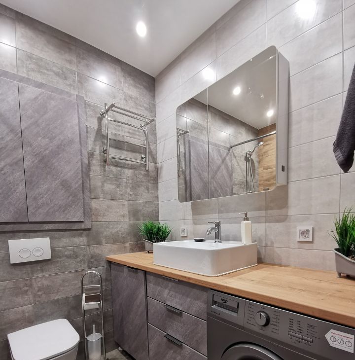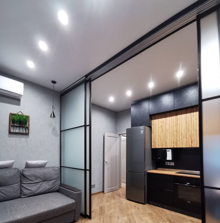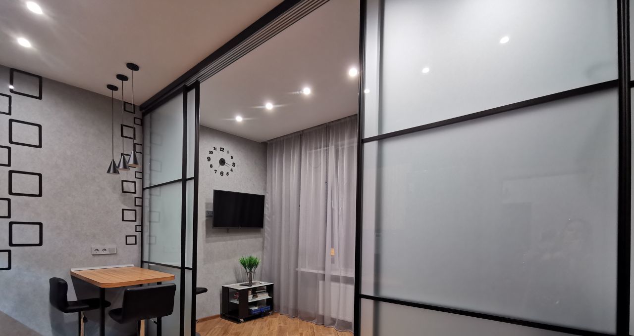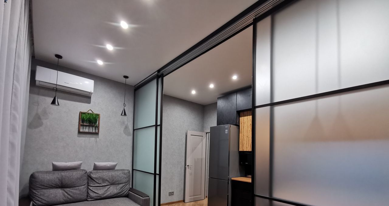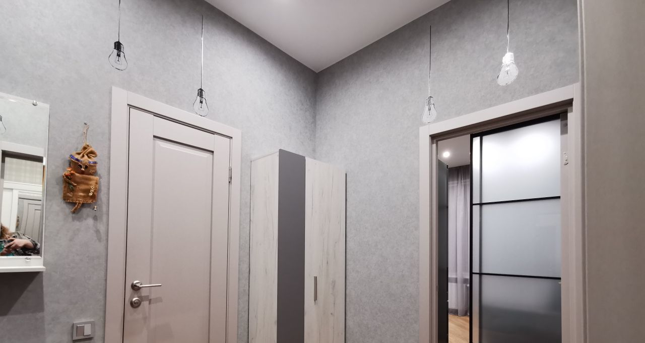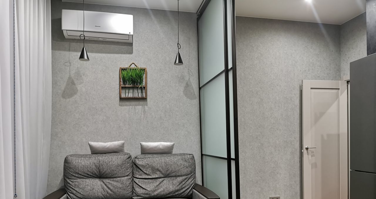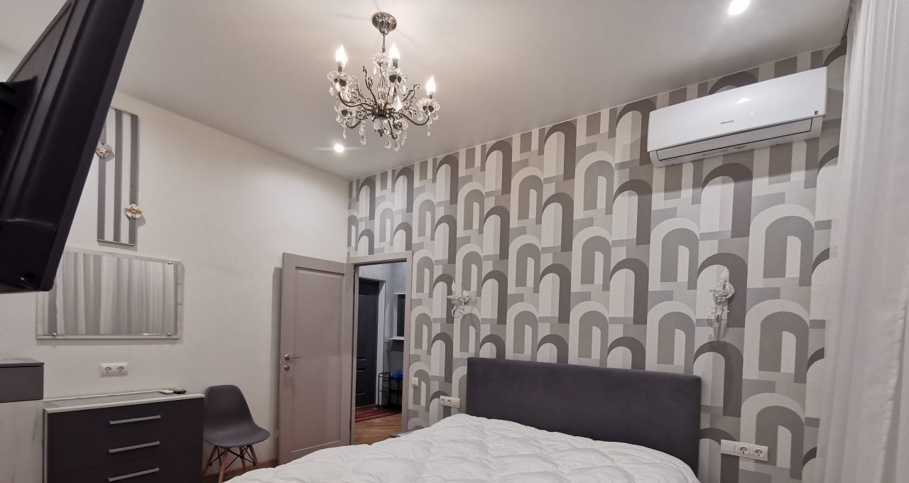 Сдаётся уютная Евродвушка в современном жилом комплексе с дизайнерским ремонтом, большая гостиная с кухней и отдельная спальня. Общая площадь квартиры составляет 45 кв. м, жилая площадь — 26 кв. м, кухня — 10м. Квартира расположена на 3-м этаже 23-этажного дома, построенного в 2020 году. Высота потолков — 3 метра, что добавляет простора и света.