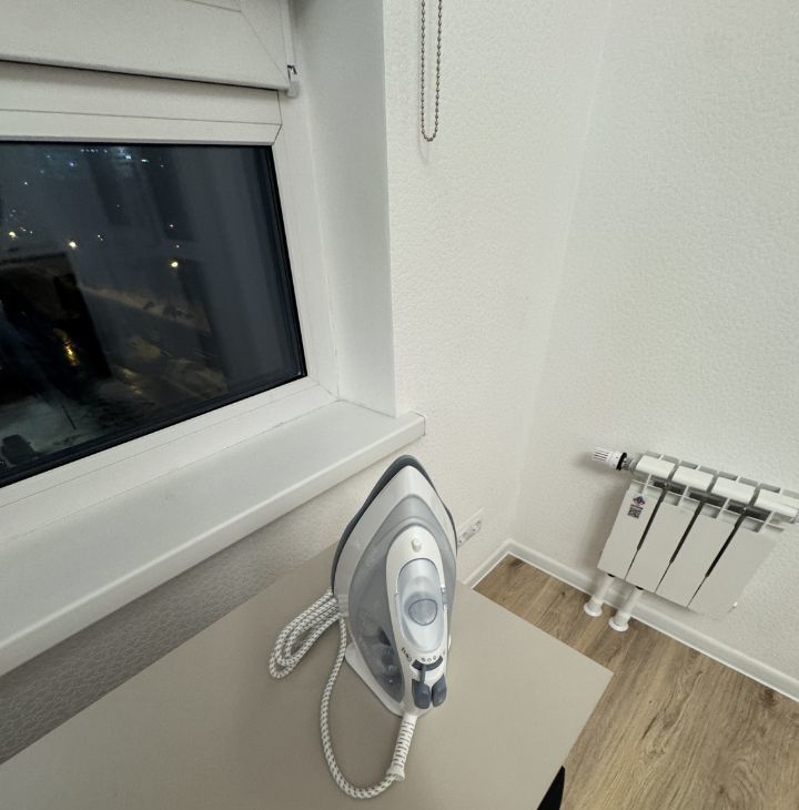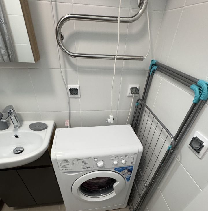 Имеются также: стиральная машина, накопительный водонагреватель, напольная сушилка, гладильная доска, утюг.