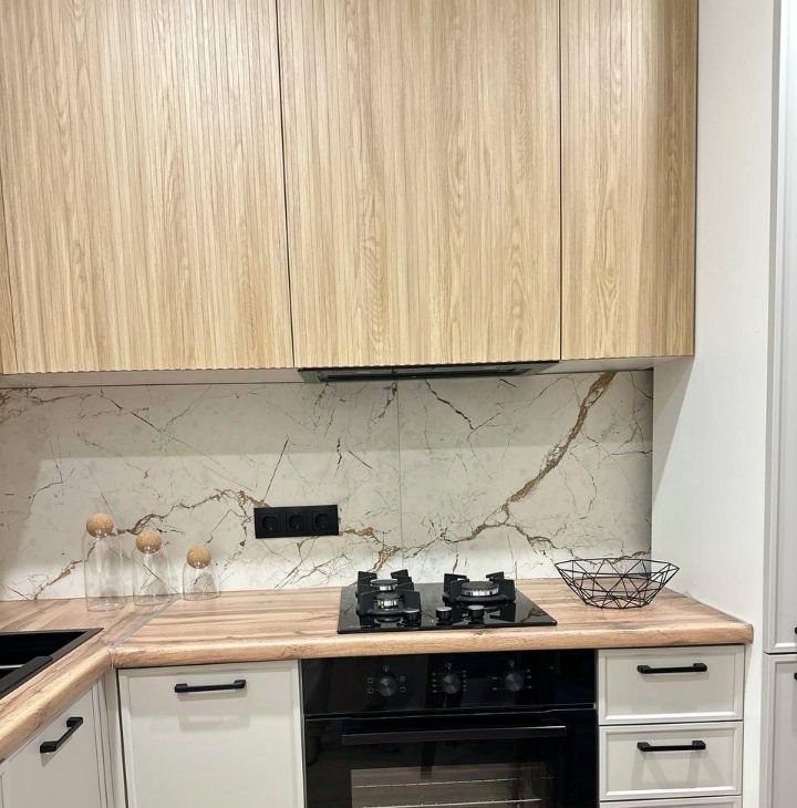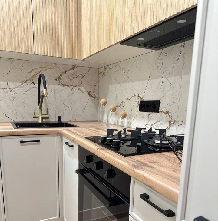 Кухня укомплектована современной техникой: посудомойка, варочная панель, духовой шкаф, ,встроенный холодильник, вытяжка