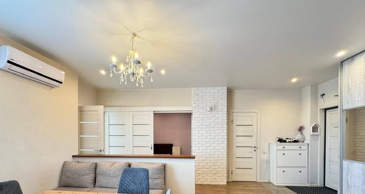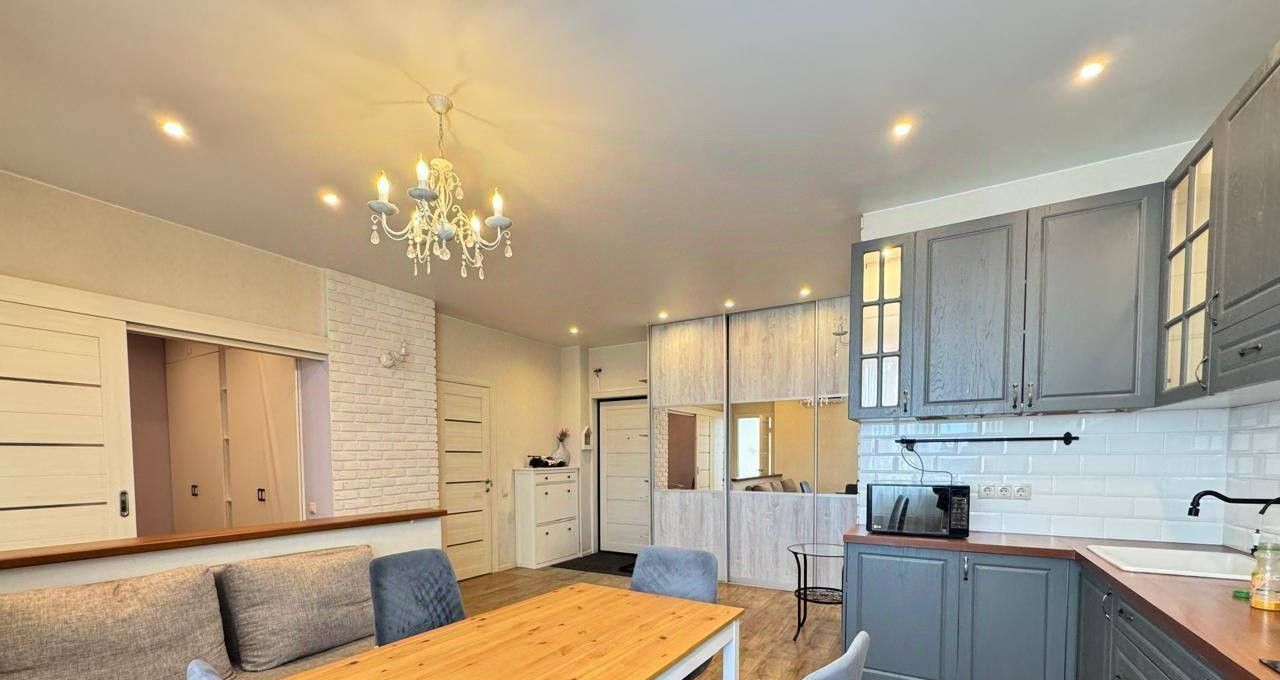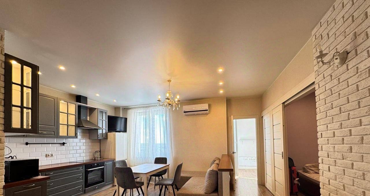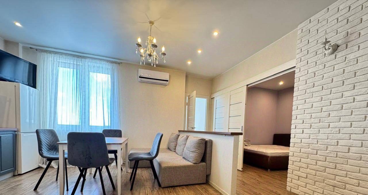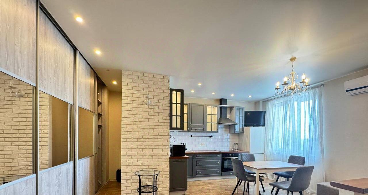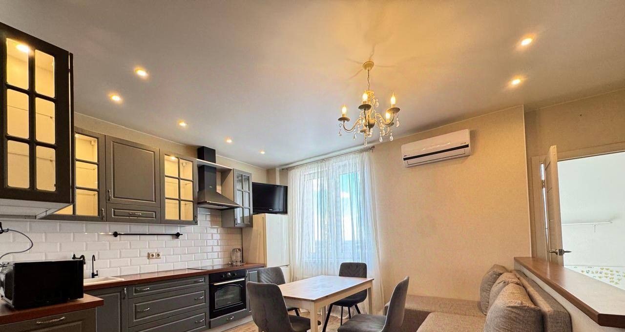 В квартире есть все необходимое для комфортного проживания: современная мебель на кухне и в комнате, кондиционер, холодильник, посудомоечная и стиральная машины. Санузел совмещенный, в ванной установлена полноценная ванна. Просторный балкон предоставляет дополнительное место для отдыха и хранения.