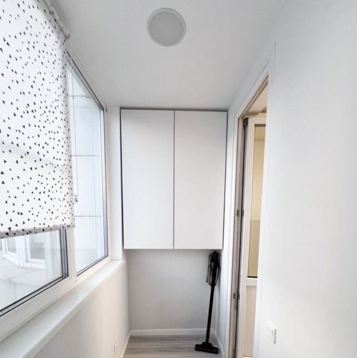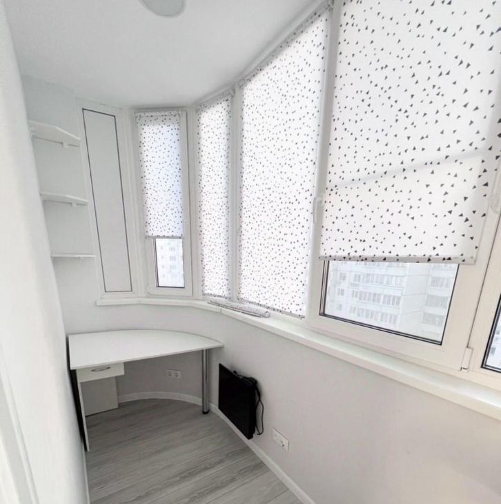 На лоджии сделан кабинет: теплый пол и электрический обогреватель.