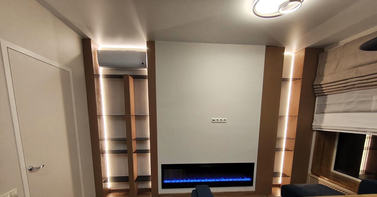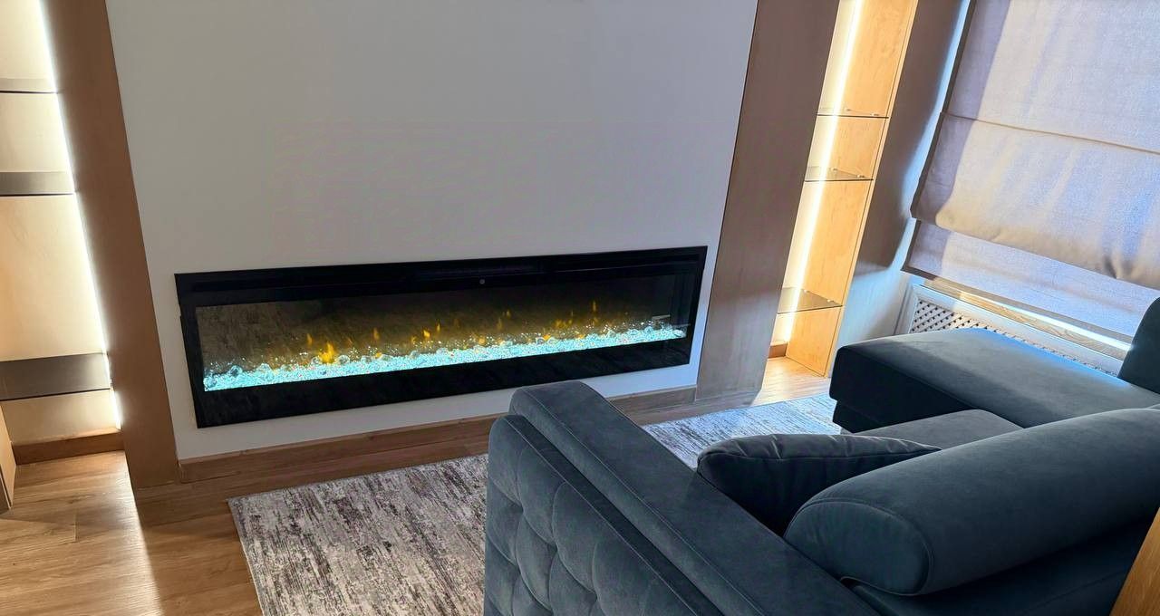 Кухня-гостиная оснащена необходимой бытовой техникой, посудомоечной машиной, винным шкафом, электрическим камином.