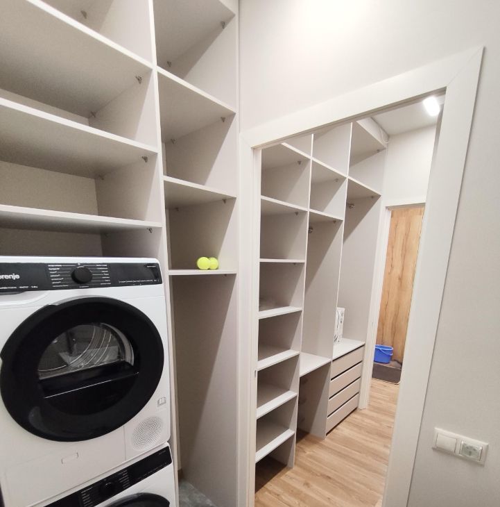 Для удобства жильцов предусмотрена гардеробная комната, постирочная со стиральной машиной и сушильной машиной.