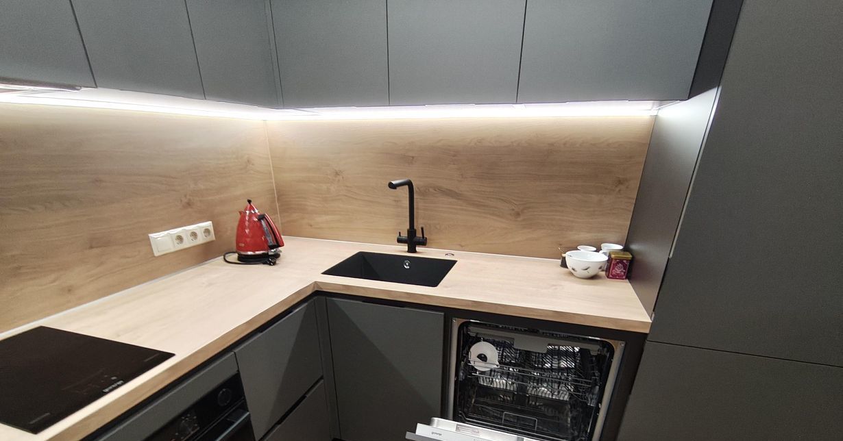 На кухне установлен фильтр воды и измельчитель пищевых отходов.