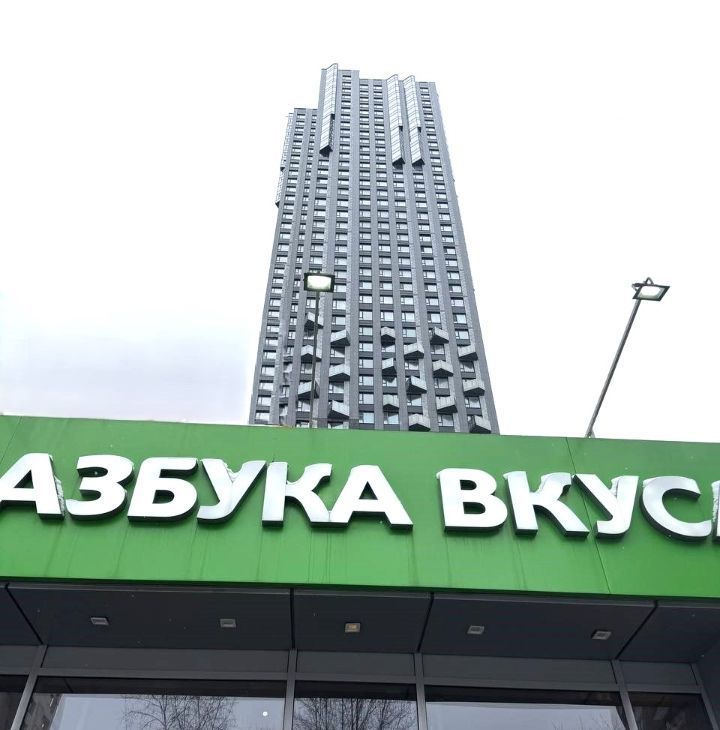 Круглосуточно работает Азбука вкуса в соседнем доме.