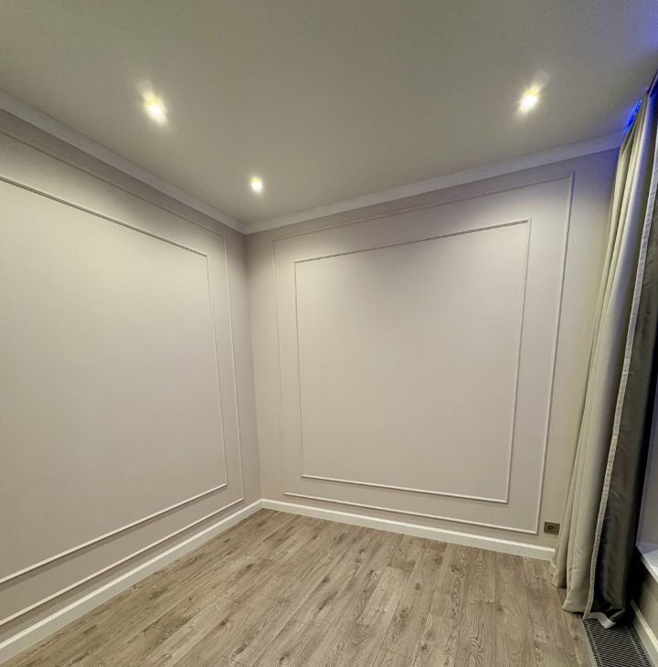 Планировка: 2 сан узла, один с душевой кабиной, второй с ванной, спальня, кабинет, гостиная - кухня, отдельная гардеробная. Вторая комната оборудована под кабинет.