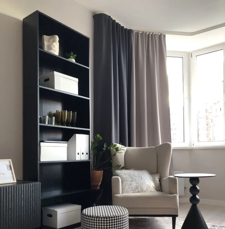Эркерное окно в первой комнате создает панорамный обзор и ощущение простора. Туда встанет уютный диванчик или рабочий стол.