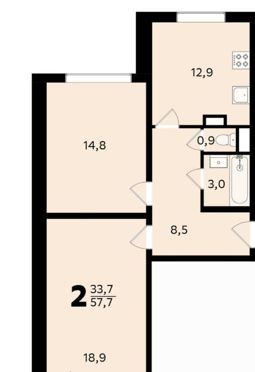 2-к кв. Москва ул. Генерала Кузнецова, 13К3 (57.8 м²)