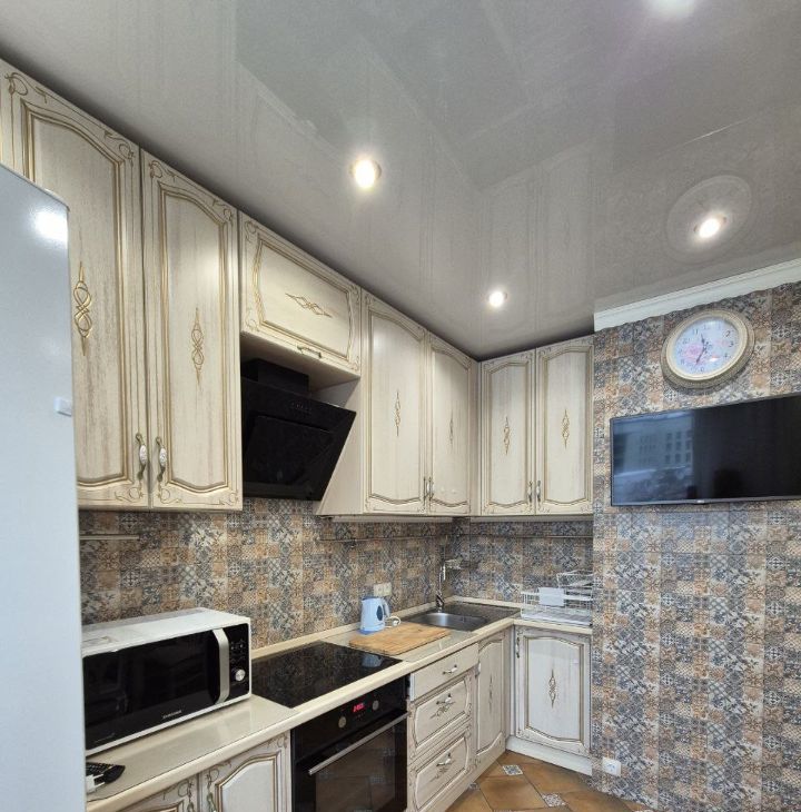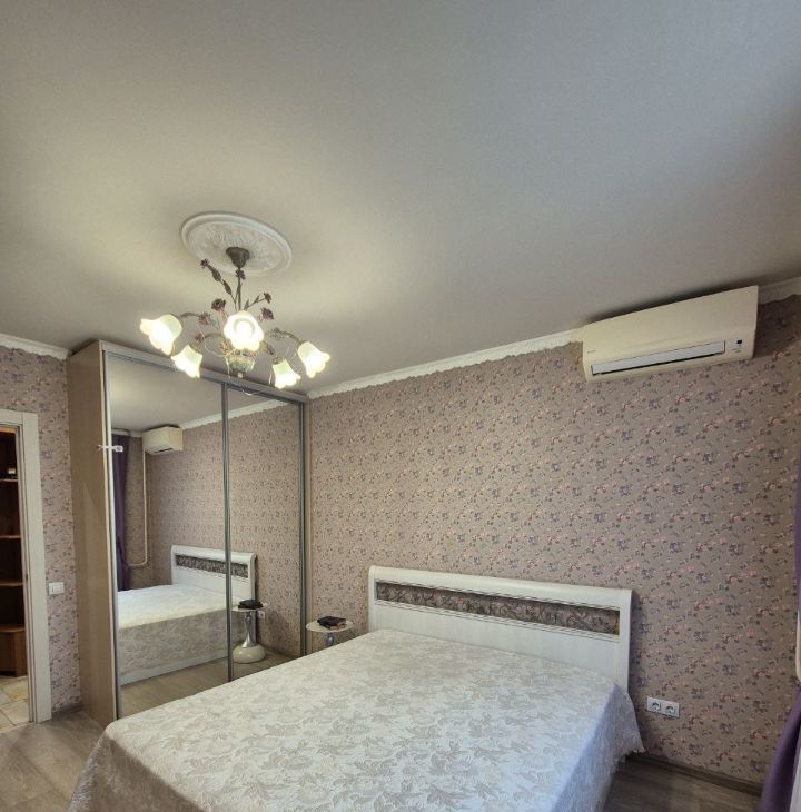 В квартире сделан ремонт, есть вся необходимая мебель как на кухне, так и в комнатах, много мест для хранения. Из техники к вашим услугам два кондиционера, холодильник, телевизор и стиральная машина.