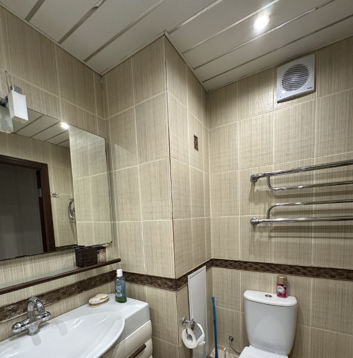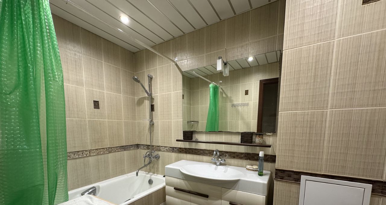 В квартире сделан качественный евроремонт. Все комнаты меблированы: на кухне и в комнате есть необходимая мебель. Из техники: кондиционер, холодильник, телевизор и стиральная машина. Санузел совмещённый, есть ванна. Просторный балкон станет отличным местом для отдыха.