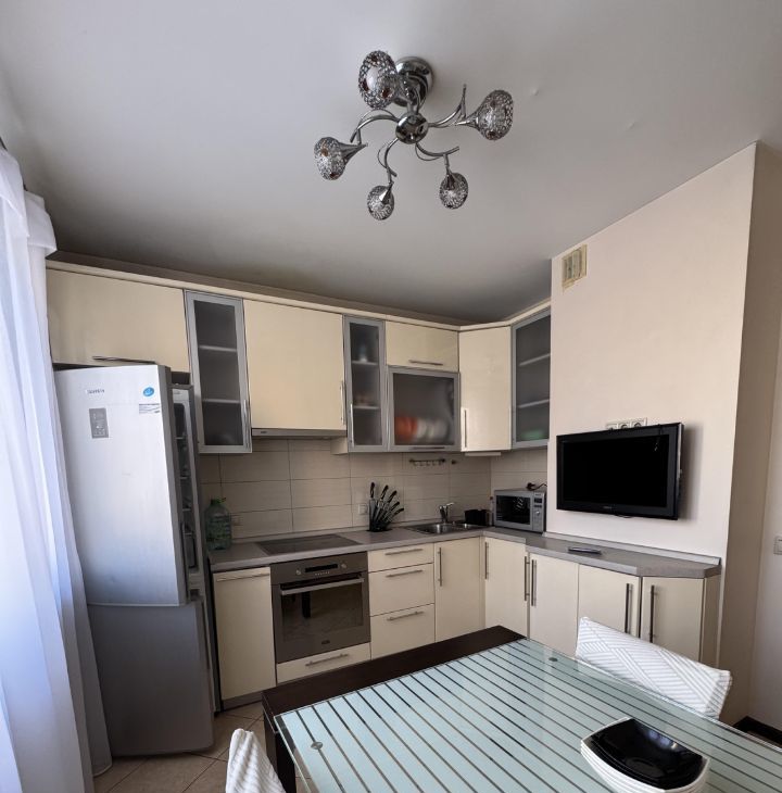 В квартире сделан косметический ремонт, интерьер оформлен со вкусом. Здесь есть вся необходимая мебель как на кухне, так и в комнате. Из техники к вашим услугам кондиционер, холодильник, телевизор и стиральная машина. Просторная ванная комната оборудована ванной. Также в квартире есть лоджия, где можно наслаждаться свежим воздухом.