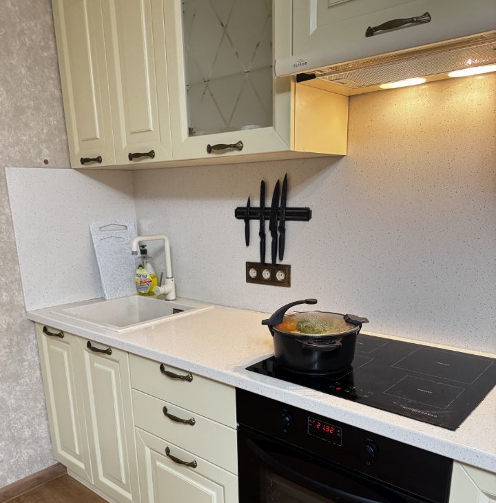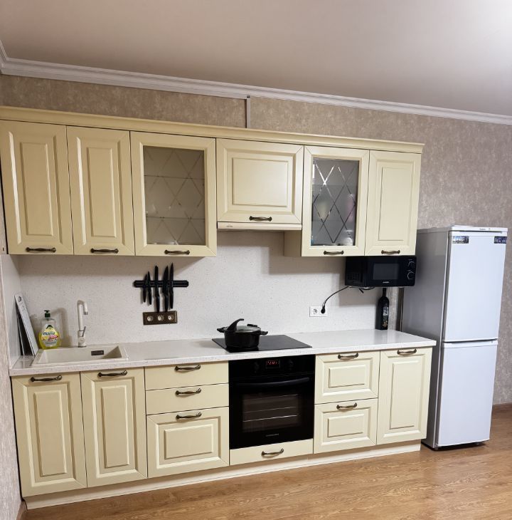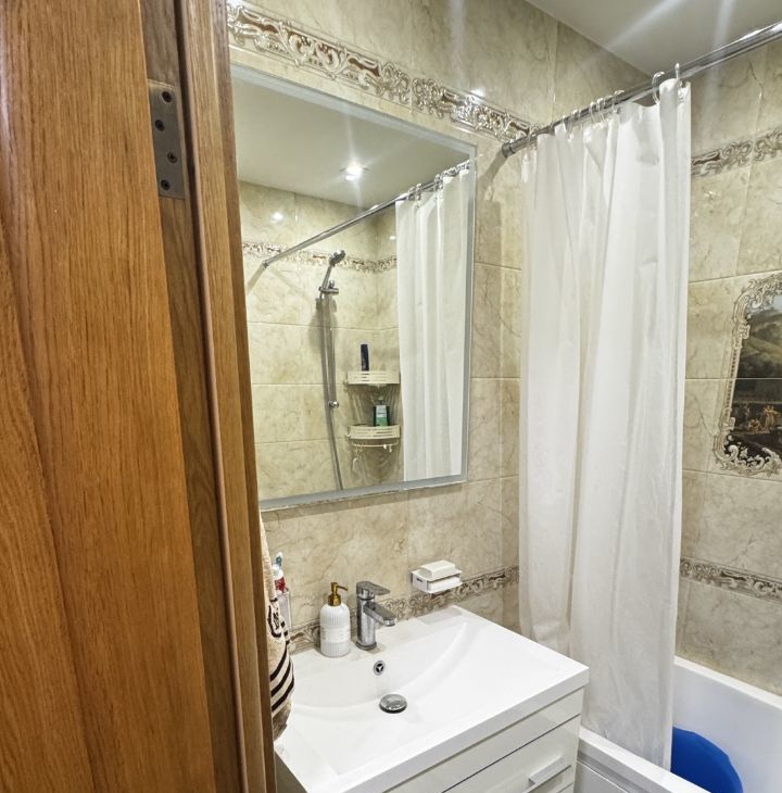 В квартире сделан евроремонт, поэтому можно сразу заехать и жить. Есть вся необходимая мебель: на кухне и в комнатах. Также установлена современная техника — кондиционер, холодильник и стиральная машина. В квартире отдельный санузел с ванной, что очень удобно для комфортного проживания. Имеется балкон, где можно отдохнуть и насладиться свежим воздухом. Интернет подключён, поэтому можно легко оставаться на связи с близкими и работать удалённо.