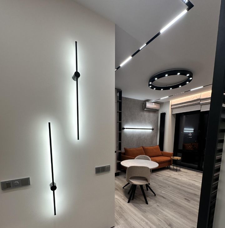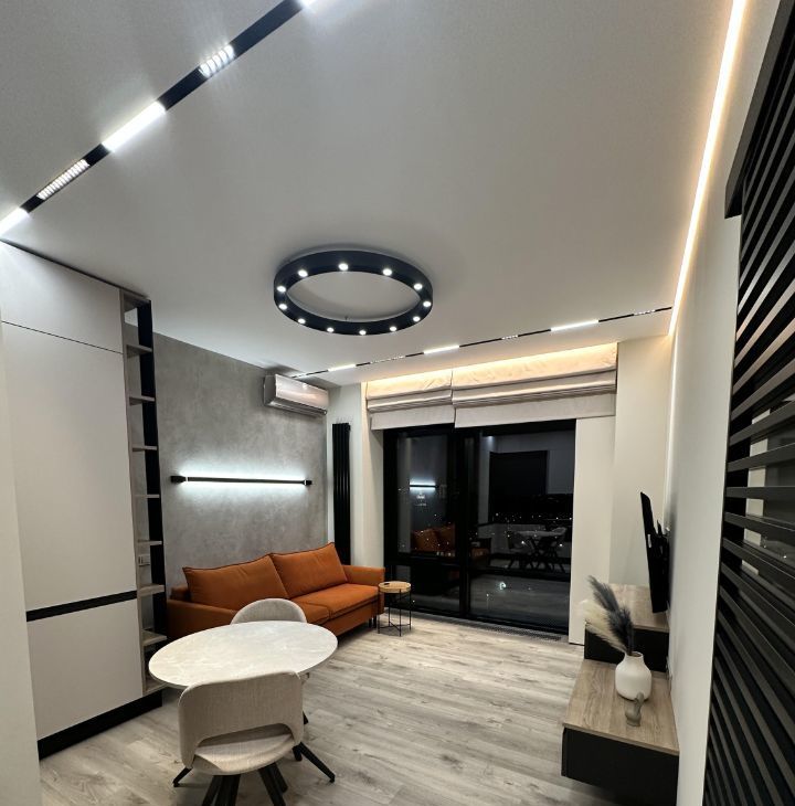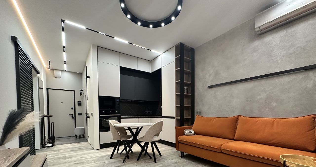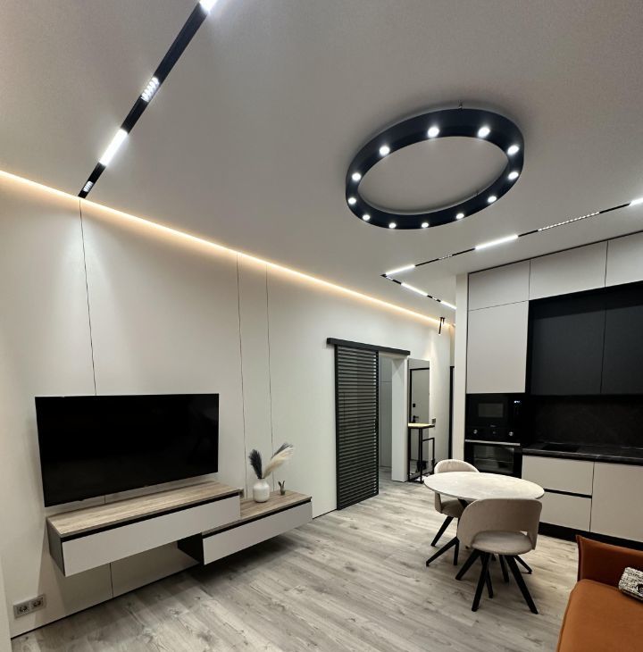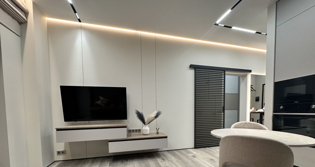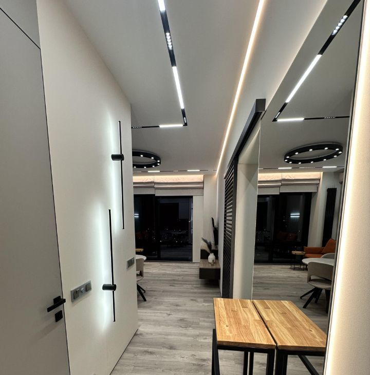 - Предусмотрены все удобства, мебель и техника. Просторная и функциональная планировка с дизайнерским ремонтом. Ремонт выполнен по индивидуальному дизайн-проекту с использованием качественных европейских материалов, немецкой сантехники, большим количеством различных светильников и подсветок под любые нужды и сценарии, с применением современных стилистических решений - дверьми скрытого монтажа, теневыми плинтусами, создающими эффект "парящих" стен, римскими шторами с электроприводом.