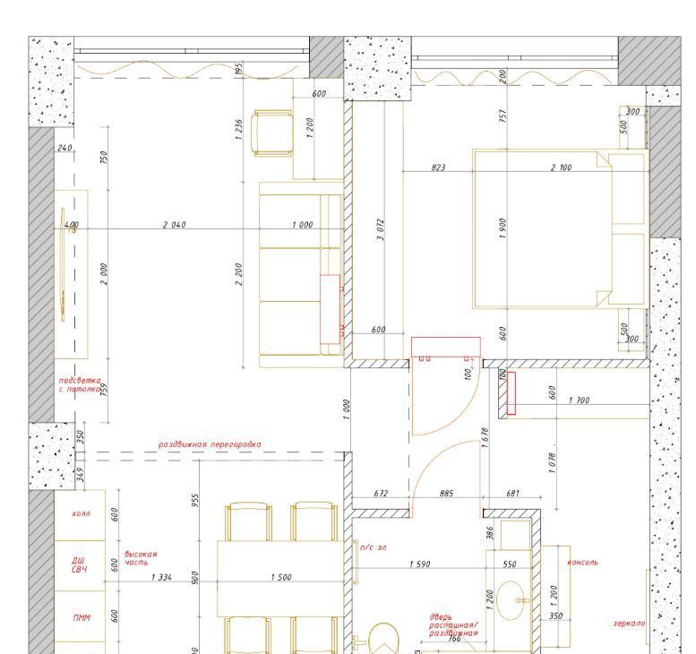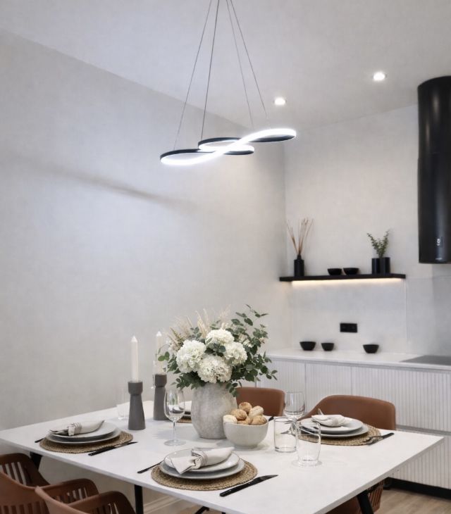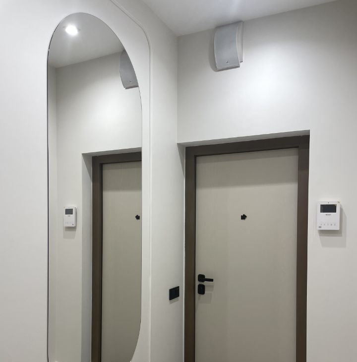 (кондиционер, индукционная варочная панель, микроволновка, электрический духовой шкаф, вытяжка, полноразмерный холодильник, электрический чайник, посудомоечная машина, стиральная машина, водонагреватель, электрический полотенцесушитель, пылесос Dayson, фильтр воды, Интернет).