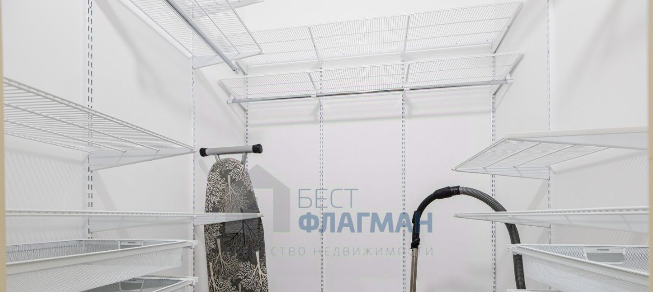 вместительная оборудованная гардеробная с новой бытовой техникой