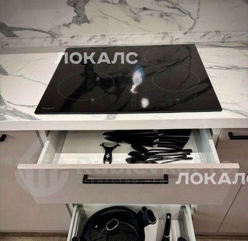 В квартире выполнен дизайнерский ремонт. Квартира полностью обставлена мебелью, есть кондиционер. Кухня оснащена всей необходимой техникой: холодильник, встроенная посудомоечная машина, СВЧ и духовой шкаф, варочная панель, вся необходимая посуда для приготовления. Стиральная машина с сушкой в ванной, бойлер, датчики затопления. В гостиной удобный диван и телевизор. Отдельная гардеробная комната.