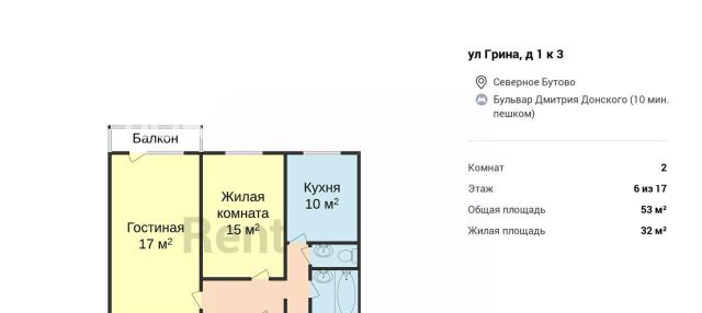 2-к кв. Москва ул. Грина, 1К3 (53.0 м²)